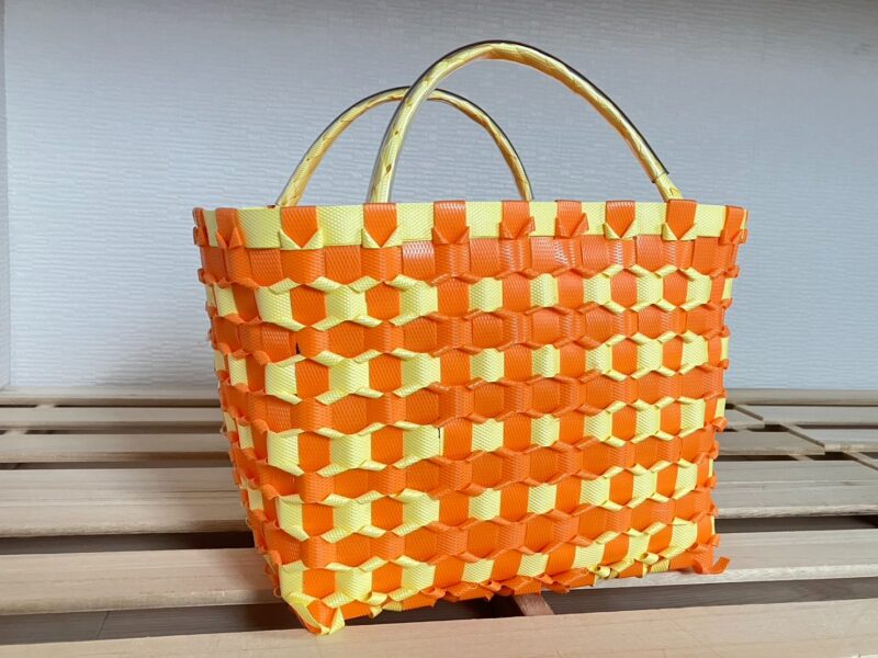 PPバンドというプラスチックの紐で編まれたカゴバッグが多いです。